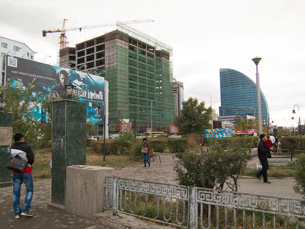 Another first impression comes from what I can only describe as a different sense of landscaping. Public green space is mostly unmanicured. Where attention is paid it is not given regularly, and I suspect that watering is not part of the treatment. Several patches of watered green grass can be found in Suhbaatar Square, but they have not been mowed recently.