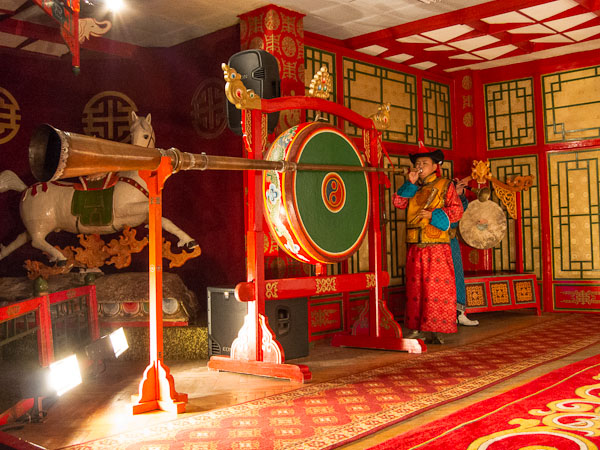 Tumen Ekh performed in a small intimate theater in Children's Park. Their performance was well worth the walk, even after a long day on our feet. They combine dance, music, and even contortionists and ceremonial masks into a one hour show that we are glad we didn't miss. Throat singing and a mouth harp were the most unusual sounds, but the two stringed, box-like morin khuur, which is played upright like a cello, had my interest. Notes are not played against a fingerboard—the strings are simply touched with either the top or the bottom of the fingers.