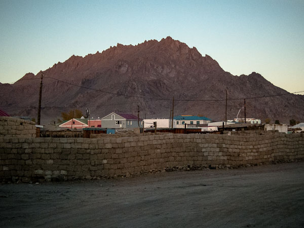 Block wall around residential neighborhood. The mountain is to the east of town.