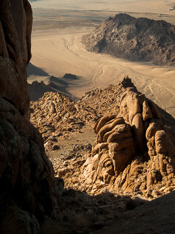 Although I have seen it named Red Goat, every one of the local people I have asked call the tall mountain to the east of town Goat Red. From town, it looks monolithic, but as you approach it, it isn't so simple. Ridges protrude in several directions, making it seem possible that “you can't get there from here” without more backtracking than I had energy for. In the end, climbing revealed the mysteries, and it was a fairly direct climb—though enough exercise to feel the next day.
