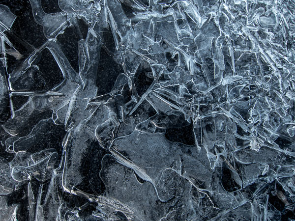 The past few days it has been cold—a high around freezing, and at an elevation over 5000', dropping down into the single digits at night. Yesterday I ran south by the river and could see the explanation for the landscape that is shown in the Google maps aerial views of this area, which shows a much larger and wider area of ice than the small stream that is here. Already there are floes of ice drifting in the stream. In some places there is ice on the bottom of the river, slabs that have broken off and are pinned there by the current. Rocks, logs, old mattresses, and tires that protrude from the river are collection points for ice that accumulates as new chunks and which then catch floating chunks until small dams are formed that divert the water elsewhere. A few days ago we were here and there was no sign of the ice. Now it is something that you hear as it passes in the water, a constant tinkling sound as the floating pieces rub against other pieces of ice. It is easy to imagine what this might look like as the temperature drops, water is diverted over the banks, and larger slabs pile up.