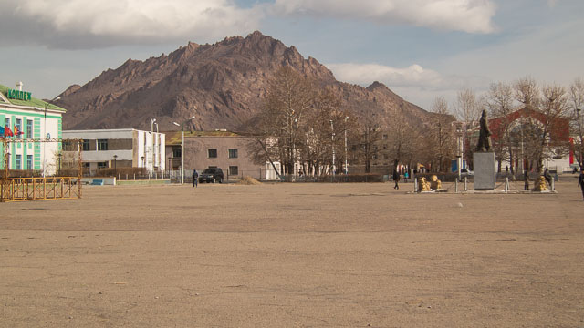 For the past ten years I have commuted between two and five hundred miles a week to my job in Alfred, NY. So ironically, it has been a relief to find myself in Mongolia with less than a ten minute walk to work—close enough to go home for lunch or even just between classes. Most days I make the trip at least twice, and over the past couple of weeks I have made it a habit to stop at the base of a statue at the west end of the Center to take the same view of Khovd's large public square. (At first I thought my students were forgetting something when they wrote that they lived near the Center... “Of what?” I wondered.)