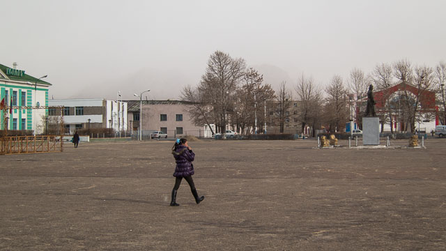 For the past ten years I have commuted between two and five hundred miles a week to my job in Alfred, NY. So ironically, it has been a relief to find myself in Mongolia with less than a ten minute walk to work—close enough to go home for lunch or even just between classes. Most days I make the trip at least twice, and over the past couple of weeks I have made it a habit to stop at the base of a statue at the west end of the Center to take the same view of Khovd's large public square. (At first I thought my students were forgetting something when they wrote that they lived near the Center... “Of what?” I wondered.)