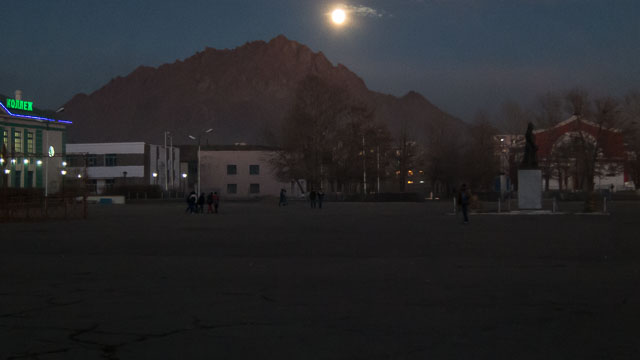 For the past ten years I have commuted between two and five hundred miles a week to my job in Alfred, NY. So ironically, it has been a relief to find myself in Mongolia with less than a ten minute walk to work—close enough to go home for lunch or even just between classes. Most days I make the trip at least twice, and over the past couple of weeks I have made it a habit to stop at the base of a statue at the west end of the Center to take the same view of Khovd's large public square. (At first I thought my students were forgetting something when they wrote that they lived near the Center... “Of what?” I wondered.)