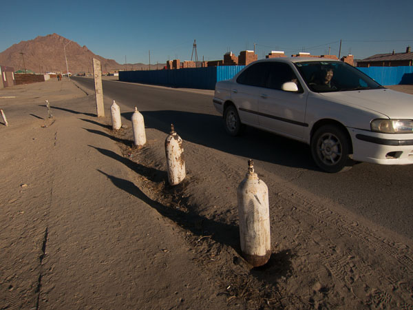 Among the things that I read before coming here was that "Mongolians, especially the nomads, live totally in tune with nature and don't rely much on scientific data." Clearly there are contradictions, and they don't stop with the relationship between nature and science. I read of a reverence for the land, but here it seems that this reverence is expressed practically and not aesthetically. If there is a concern for the effect that human habitation has on the appearance of the land, I have not noticed it. As I watched the installation of trash cans, pedestrians walking by dropped garbage next to them, either unaware of their purpose or in defiance of it.