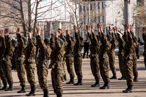 Today is Chingas Khan's 850th birthday, a national holiday here in Mongolia. Schools and businesses are closed, and we have had the day off. I used the morning to catch up on some grading and had planned to work on another notebook in the afternoon. But on my way to the square to get my daily photos I was met by a large celebration. It took a while before I ran into some people I know who could explain that on this day every year new recruits are inducted into the army. Although it is a peaceful country now, celebrating the renewal of the present Mongolian army on the great conqueror's birthday provides a reminder that this was not always the case.