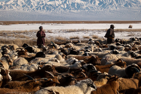 Farther down the road, my students saw a ger that looked inhabited, so our driver simply left the road and headed across snow and the sparse vegetation to give us a look at the process of herding goats and evaluating them for the market. While my students automatically pitched in to help with the herding, I photographed. And photographed. And eventually, was lead to understand that my students did not bring me here just for my pleasure, but that they wanted to talk. And through this negotiation, which started at the goat herd and found resolution as we struggled to understand each other in a van that barreled across the desert, we stopped the van and agreed to meet the driver down the road a way as we walked along the frozen lake shore. For several reasons, it was a good decision.