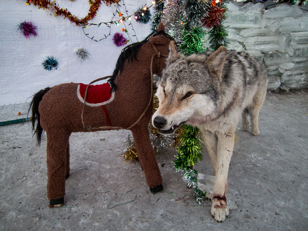 Their dependence on herd animals sets them up as being logical adversaries of the wolf, just as we have treated wolves historically in the United States. But here there is another element that is at once spiritual, superstitious, and puzzling, for as revered as it is said to be, its frozen body is tossed around like cordwood. Seeing a wolf is said to be good luck. Shooting a wolf is said to be good luck. Carrying a wolf on the hood of your car is said to be good luck. A wolf's ankle bone that is threaded onto a piece of leather that is tied to the side of your boot is said to be good luck.