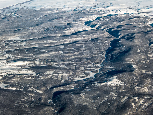 On my way to the US, my flight from Seoul left at dusk, and heading east, it was dark within minutes, so failing to get a window seat was not a serious disappointment. I had a good seat booked from San Francisco, but missed my plane while I was sitting at the gate. I re-booked for the next day, but that flight was delayed and again did not leave till dusk. So except for some time over Mongolia, it was not until my return trip that I found a good enough view to use a camera.