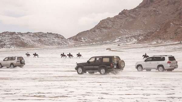 Without fanfare, a rope is laid on the ground. Handlers help wrangle the horses and riders together somewhere behind the rope, then gradually approach it. At some point when they get close to the rope, with no warning that I was aware of, the race begins as all of the horses take off. Spectators get into their vehicles, start their engines, and follow in what can only be described as an off-road, cross-country free-for-all to get the best viewing position. Each of two races had a dozen horses running, and two to three times that many Land Cruisers, Lexuses, Nissans, or any other expendable vehicles whose drivers were only marginally concentrating on navigation.