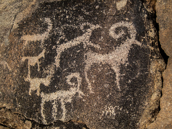 To confuse the issue of dating these drawings, it seems that some older drawings have been enhanced by modern helpers. Natural processes of erosion and the cracking of rock are also taking a toll. Well out onto the flat plain that meets the steep sides of the mountain, pieces of rock can be found with drawings or parts of drawings on them. More disturbing are areas where it looks as though pieces of the rock have been removed by unnatural means, either taken for their drawings or quarried for use as building material.