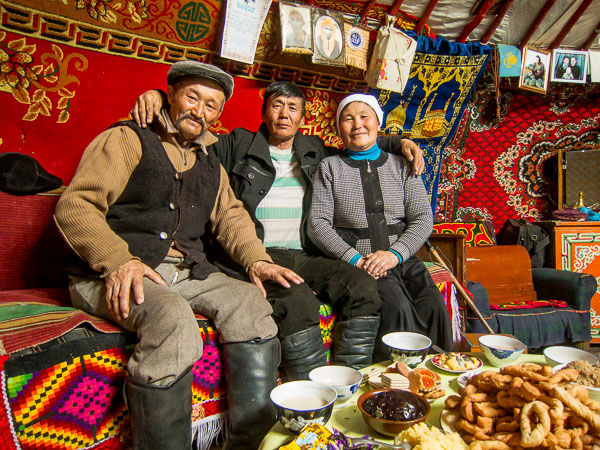 Batakhai, left, is Gulnar's uncle. His wife is on the right, his friend is in the center.
