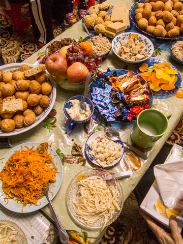Imagine Thanksgiving lasting for three days. Add the suggestion that you eat at many different homes during that time, and the requirement to cook for visitors who are all trying to do the same thing, during the times they are not eating. This pretty much describes the complicated logistical and social side of Nauriz, the Muslim holiday that marks the beginning of Spring. It is celebrated in Khovd by the many Khazaks who live here and work and go to classes side by side with Mongolians. Unlike Tsagaan Sar, it is not a national holiday, but for Khazaks that doesn't matter. There is too much preparation to do and too many homes to visit, so many take the day off anyway.