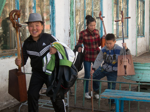 For me, an especially bright spot in the public education system here was the music program. Even though school was in recess for spring break, both music and art students were still working. At the primary school where we gave our workshops children raced between the building where their morin khoors were being tuned by their very young teacher and an empty room where they were practicing. Next to the high school dorm where we were staying older students were practicing in a building that looked like it had just been renovated, demonstrating a Mongolian sense of priorities to the tradition of its native music.