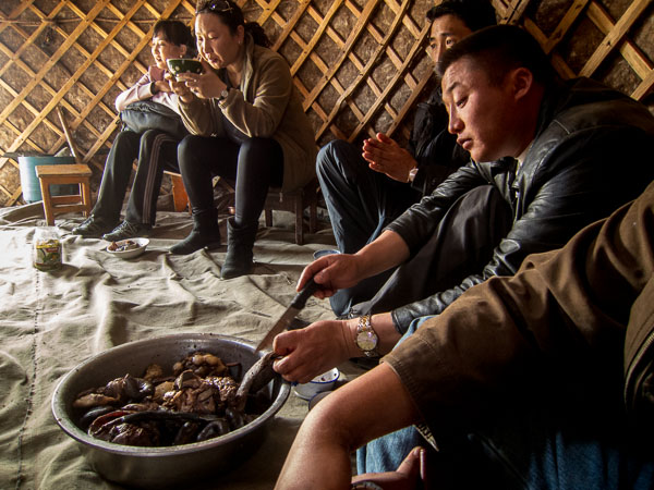 Much of the problem is my inability to understand the Mongolian language. It was only when I asked point blank that anyone would explain, in English, what was going to happen next, or even what was happening at the moment. Even then, there was still plenty of room for error. Why are the police stopping us here? (I still don't know.) Is it really a good idea to give guns to prisoners so they can shoot dogs? (Maybe they are not actually prisoners.) And on this morning, after an hour-long scenic hike to "the school" for a meeting, a phone call where I learned that Puje and Zaya were at a restaurant—and another call to finally learn that I had been to both the wrong school and then to the wrong restaurant. At ten o'clock I got back to "the school," the one I had left from earlier that morning, in time to wait while everyone packed. By eleven we were ready.