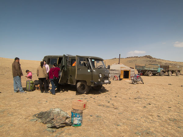 Much of the problem is my inability to understand the Mongolian language. It was only when I asked point blank that anyone would explain, in English, what was going to happen next, or even what was happening at the moment. Even then, there was still plenty of room for error. Why are the police stopping us here? (I still don't know.) Is it really a good idea to give guns to prisoners so they can shoot dogs? (Maybe they are not actually prisoners.) And on this morning, after an hour-long scenic hike to "the school" for a meeting, a phone call where I learned that Puje and Zaya were at a restaurant—and another call to finally learn that I had been to both the wrong school and then to the wrong restaurant. At ten o'clock I got back to "the school," the one I had left from earlier that morning, in time to wait while everyone packed. By eleven we were ready.