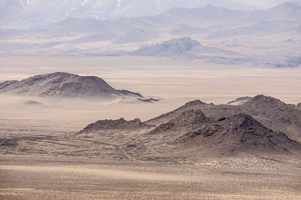 Dry plains above Har Us Noor, looking from the east side of Goat Red. The lake is between the ridge at the top and the mountainside beyond.