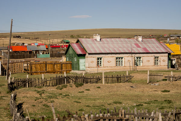 Compared to our corner of Mongolia, there were relatively few gers along the way. Many people had small wooden houses, but the most noticeable and common housing were the four-unit single-story buildings that are found right along the tracks in practically every small village. Because of their age and design, I am guessing (will let you know when I find out for sure) that they were build by the Soviets, either to house railroad workers or as agricultural worker housing.