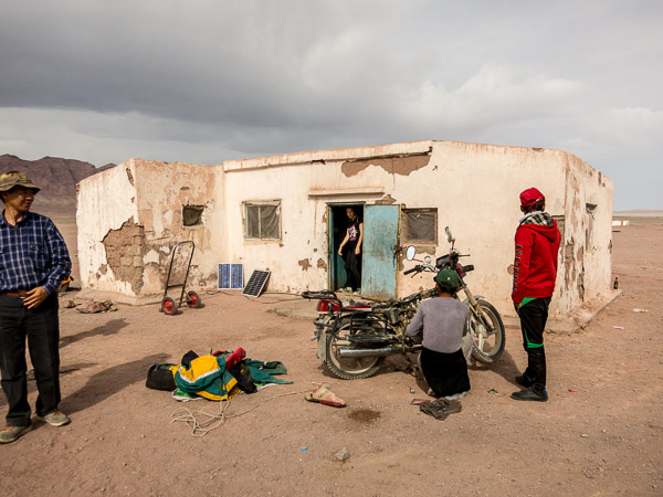 Our bus stopped at a small delgoor to get snacks. There is a problem with this motorcycle, and many people offer suggestions.