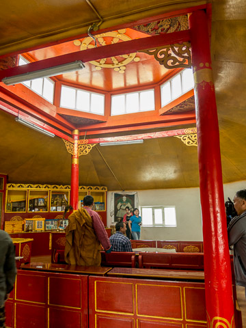 The first trip was organized by the university for foreign teachers and students, so our group included Inner Mongolians, Koreans, Russians, and these two Americans. We started by stopping at Har Us Noor, went to visit a herder family (the mother of the bus's driver) and then on to Manhan, where we had lunch with the local school administrators, visited a temple and a museum, and then headed on to the site of ancient cave paintings. Along the way we stopped at another petroglyph site, the site where prehistoric human remains were found, and the tumbled rock ruins of another settlement.