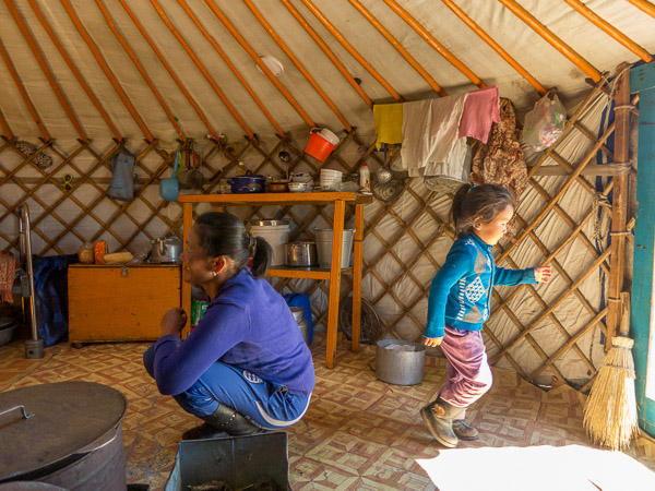 The first trip was organized by the university for foreign teachers and students, so our group included Inner Mongolians, Koreans, Russians, and these two Americans. We started by stopping at Har Us Noor, went to visit a herder family (the mother of the bus's driver) and then on to Manhan, where we had lunch with the local school administrators, visited a temple and a museum, and then headed on to the site of ancient cave paintings. Along the way we stopped at another petroglyph site, the site where prehistoric human remains were found, and the tumbled rock ruins of another settlement.