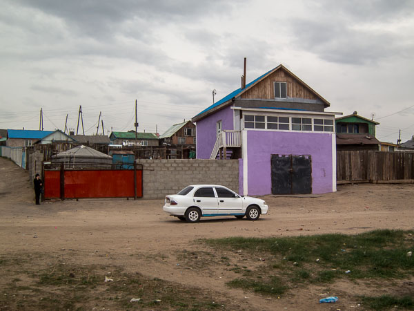 Somewhere in Moscow, an architect is smiling at this picture from his grave. This, the southern and newer part of Darkhan, does not look this good often any more. But in the soft evening light everything looks orderly, the hard edges come off, and you can look at it as it may have been first imagined over fifty years ago.