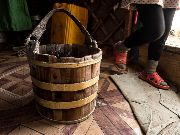 The second problem is milking the camel. An adult camel is a large animal, six to seven feet tall at the shoulder and a foot or two higher than that to the top of its hump or head. It can weigh as much as a small car, and so convincing it to stay still while you milk it is no easy task. Because these camels are waiting to get to their calves, they cluster around the corral without much effort. When milking them most can be convinced to stand still with a rope around their back legs. For difficult or stubborn camels, someone will grab them by their ear and hang on firmly until the milking is done.