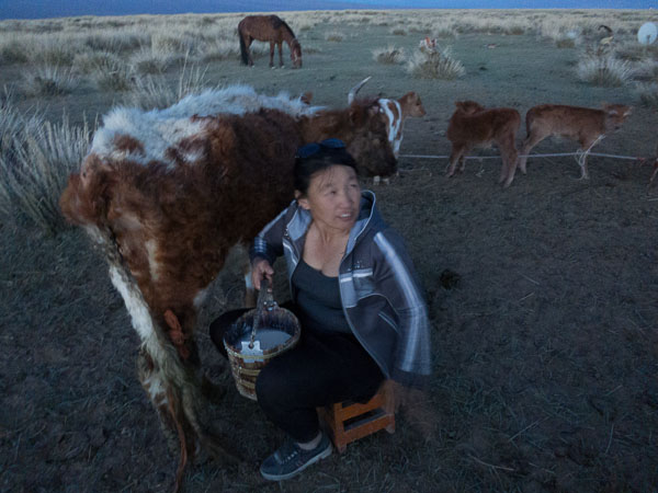 Our visit last weekend with Davaa and her family to her Countryside was a three and a half hour drive to the southeast of Khovd, starting out along the main braided dirt road to Ulaanbaatar. Just after the newly paved section at Mankhan started, we turned off onto a small track that wove through grazing land, past an occasional ger, and through one small group of mud buildings. Along the way we let off some of the passengers we had brought from Khovd—children who go to school in the city during the week, and others like us, who are visiting The Countryside for the weekend.