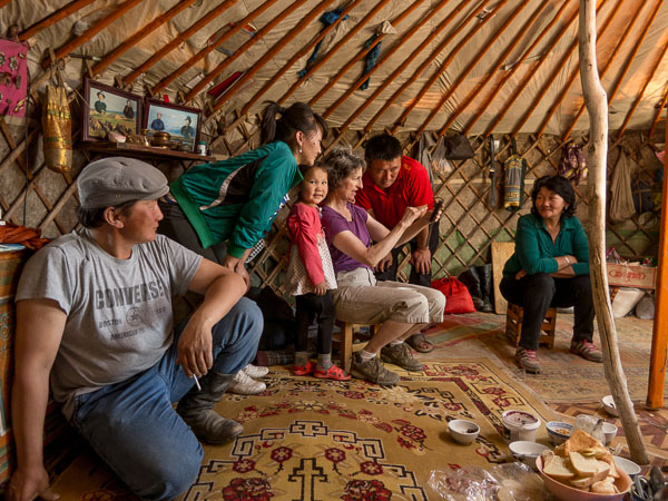 Our visit last weekend with Davaa and her family to her Countryside was a three and a half hour drive to the southeast of Khovd, starting out along the main braided dirt road to Ulaanbaatar. Just after the newly paved section at Mankhan started, we turned off onto a small track that wove through grazing land, past an occasional ger, and through one small group of mud buildings. Along the way we let off some of the passengers we had brought from Khovd—children who go to school in the city during the week, and others like us, who are visiting The Countryside for the weekend.