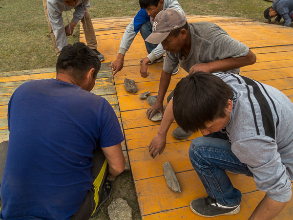 The process starts by loading the ger onto a flatbed truck. (We now understand why Mongolians raise camels.) This ger had several additional complications. The first was that it had not been set up for three years, since our neighbors had been living in Japan. Storage of the walls can cause bending that influences how things go back together. And in three years, one can forget exactly how the floor goes together.