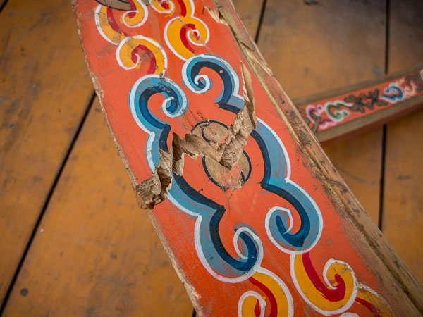 Then there is the fact that this is a city ger, which means that it has a wood floor that raises it above the soil and makes a surface that is easier to set furniture on. The floor is nailed together in large sections, which would challenge even a camel, so getting them out of storage and on to the truck was quite a job.