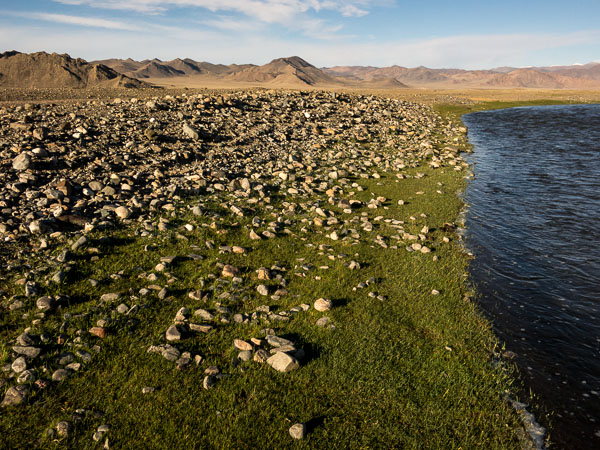By morning the sky had cleared and we hiked back in crisp weather for most of the morning, crossing the branches of the Buyant, climbing the back of The Nose we had come to see behind, and dropping back down to the river's plain. As we neared Khovd's bridge in mid-afternoon, there was more thunder, then rain and hail. As an appropriate ending to our stay in Mongolia, a family in their Land Cruiser pulled over and gave us a ride for the last mile home.