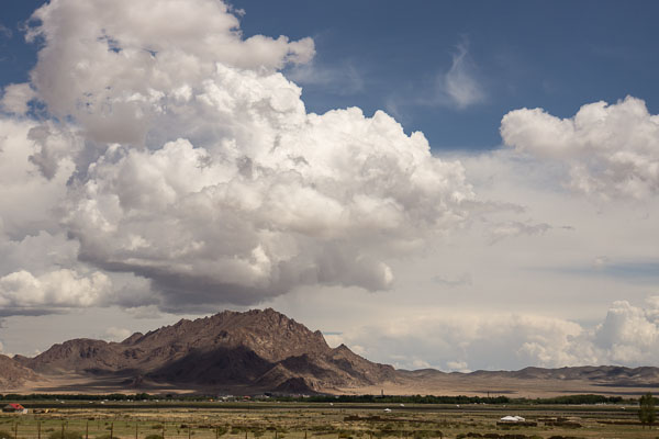 By morning the sky had cleared and we hiked back in crisp weather for most of the morning, crossing the branches of the Buyant, climbing the back of The Nose we had come to see behind, and dropping back down to the river's plain. As we neared Khovd's bridge in mid-afternoon, there was more thunder, then rain and hail. As an appropriate ending to our stay in Mongolia, a family in their Land Cruiser pulled over and gave us a ride for the last mile home.
