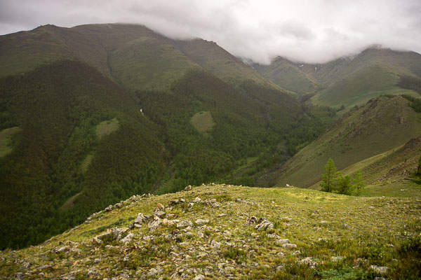 Windows were broken by vandals, paint peeled from neglect, and whole buildings seemed abandoned. But outside teenagers played basketball and volleyball and in the room next to ours old men drank vodka and sang. On our first day, Judy and I hiked up next to the small river, through tall grass and wildflowers that included wild peonies, poppies, and columbine. Rain and mosquitoes (along with a power outage that would last our entire stay and probably well beyond) sent us to bed early, and we woke to more rain the next day—not quite fair we thought, given that half the rain we have seen in the past nine months has happened on our two camping trips. But it only started as a sprinkle, something that we didn't let get in our way. With Muugii, our translator and recent graduate from our university, we climbed the ridge that sits across the river from our camp—four hours to the top and one back down the quick way in rain that had picked up.