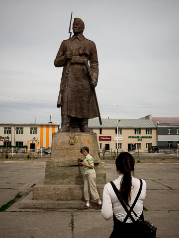 Ulaangom sits near Mongolia's largest lake, in the northwest corner of the country. The surrounding ground is table-flat, barely sloping from the lake a few miles away to the mountains to the south and west. Although it had more of them at one time, it has practically no trees now. On the road to Red Mountain there are stumps, signs of the possibility of trees. We heard a story of a Russian military leader who was camped in the forest that once occupied the flat green plain below the mountain. When someone fired a shot and he couldn't discover the source, he had his men cut down every last tree to prevent such a thing from happening again.