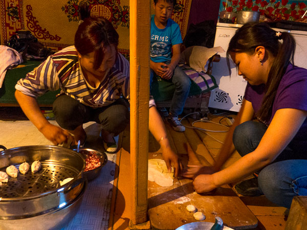 Lkhaijav, who goes by the shorter and easier to pronounce name of Sue, helping her mother make buuz.