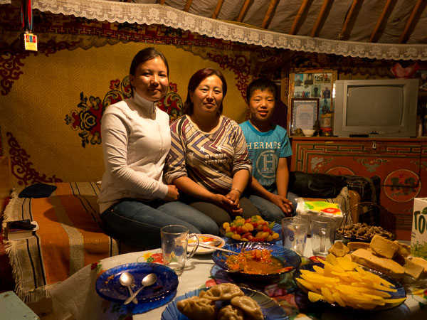 We stayed with the parents of our neighbor and colleague at Khovd University, Tsagaana, and her husband Ojo, who stayed for a few days and then left us with her parents, who speak practically no English. Tsagaana had arranged for her brother-in-law to get us to the airport, and to take us to the mountains for an overnight camping trip. We also spent some time with one of my Khovd University freshmen—a tour of Ulaangom and a dinner with her family, and a senior who just graduated—an overnight trip to a nearby mountain camp, both of them translating for us on different tours.