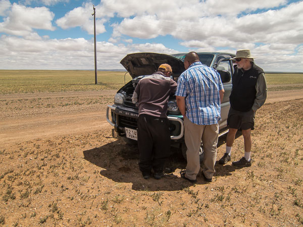 After switching out a used spare at our first stop, the driver called his brother in town to bring a new one.