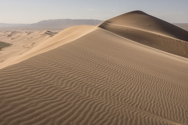 My anticipation of our tour to the Гов was flavored by by everything I thought I knew about it—from the reading I've done, but also from the pictures I've seen. You have seen the same pictures, and so you have the same impression I did. Sand dunes, camels, heat waves shimmering on the horizon creating patches of large and temporary lakes that disappear when you approach. So let me tell you a secret about what we call the Gobi Desert and what Mongolians just call the Gov. (It rhymes with rove.) Most of it looks like the rest of Mongolia, but bigger—sandy, gravelly, or rocky soil, distressed uplifts of solidified sediment, eroded silt from a long ago lake bottom, and sparse vegetation of grass and sage-like plants which, at this time of year, give the land a pale green haze.