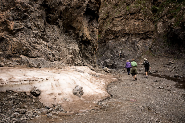This is all of the ice field that remains in late June, a visual indicator of temperature change in the region. The area used to have ice that lasted all summer.