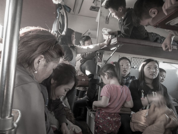 After spending a month in Ulaanbaatar we traveled to Darkhan this weekend, for Judy to present a workshop at a branch of her university there. We went by train, which for a photographer is both blessing and curse. It was a relief to get out of town and see the landscape to the north of the city, but lashed to the tracks as you are when traveling by rail you can only dream about a chance to come back with more time to spend. The last time we came to Darkhan the temperature was warm enough to travel with the windows open, so that it was possible to make quick snapshots without obstruction. A dozen degrees below freezing in a full car, that was not even a remote option, so what I saw I viewed through filthy glass, three layers thick.
