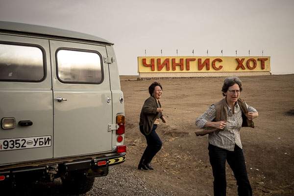 In this land, at half past winter and a quarter till spring, most of the people are still living in towns, but they are much smaller towns here—Erdene, Bayandelger, Baganuur, Tsenkhermandal, Jargaltkhaan, Morun—all can be found on our Mongolian map but are unmarked or visible only at high magnification on Google Earth. We passed through Ondorkhaan, whose name has recently been changed to Chingis and is the capital city of Khentei Aimag. (Locals still call it Ondorkhaan.) Then, after dark, over mountains and past Munkhkhaan to Baruun Urt, the capital and largest city in Sukhbaatar Aimag, where we spent one night and a day of workshops before heading back to Chingis for the next two nights. Scheduled to leave in late afternoon, an uplanned truck repair delayed us until after dark. It is not a good way for a photographer to travel.