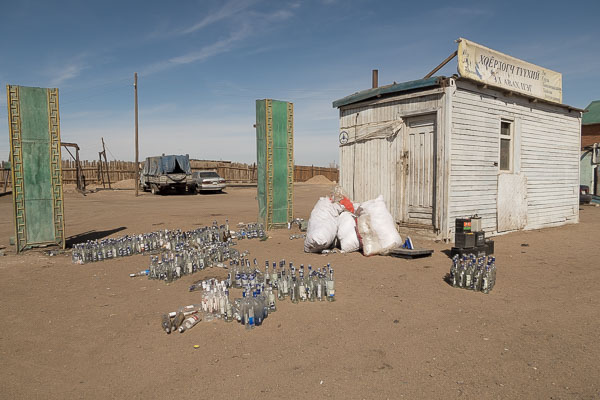 In Chingas I came across the first recycling center I have seen outside of Ulaanbaatar. Although it was closed on Saturday, rows of clear glass bottles were lined up outside, along with a small stack of car batteries. A man who was curious about me photographing them explained that they will be taken back to Ulaanbaatar to be crushed or melted down. For all the re-use of materials here, a second use for the many empty vodka bottles still waits to be discovered.