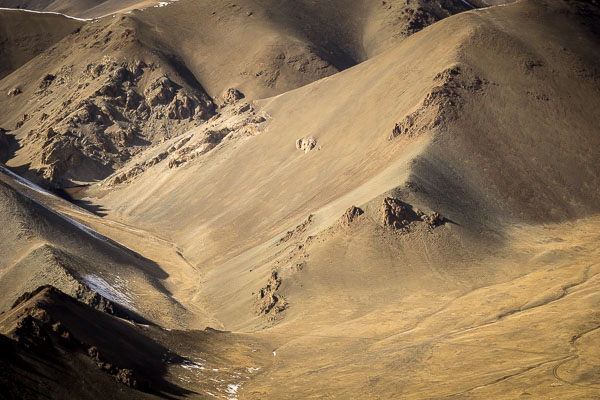 From a distance Jargalant looks monolithic, but like other mountains, it is more complicated the closer you get. Large valleys split into small, separated by smaller ridges. Different flavors of rock weather into various colors of sand.