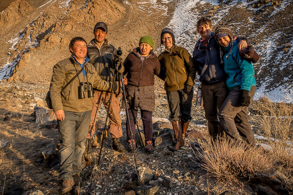 We left early, stayed late, and looked, especially Davaa, very hard. Although we saw prints in fresh snow, scat that was recently buried, the stripped hide from a recent kill, and the familiar odor of cat spray left to mark its territory, we joined the club of those who did not see a snow leopard. We did see argali sheep and ibex, and protected territory that, even in Mongolia, is free of litter. On this afternoon in late March we found our way down the mountain and back to the car by way of a frozen stream, descended the dry bed of a river at dusk, and wound our way around Jargalant's gravelly base, toward our home for the night, in the dark.