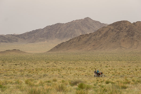 The difficulty begins with the fact that it is so hard to get to, that although red lines cross western Zavkhan on the official road map of Mongolia, when you cross western Zavkhan on the ground you do so on a road that ebbs and flows with the needs of the local nomadic population. In high-traffic areas you can choose between the least torturous washboarded tracks across the desert, experimenting with one before bailing out and trying another of the braided paths. In other places grass grows in the space between a single pair of sandy tire tracks—a few runs a year from supply trucks to a village